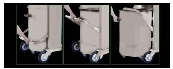 ⑤ 工廠用吸塵器大容量集塵桶,收集效率高,快卸式分離式集塵桶,倒塵方便快捷。過濾桶與集灰桶,上下桶分離, 快卸結(jié)構(gòu)是本機標準配置,給使用者帶來最大的便利就是清灰方便,當需要清理灰塵時,只需要將壓桿上提,集塵桶自然下落至地面,拖動自帶腳輪集塵桶傾倒灰塵,完成后壓下壓桿即可。